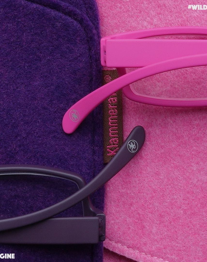 Thanks to the longer curved temples, our Klammeraffe glasses can be comfortably hung around the neck when not in use.